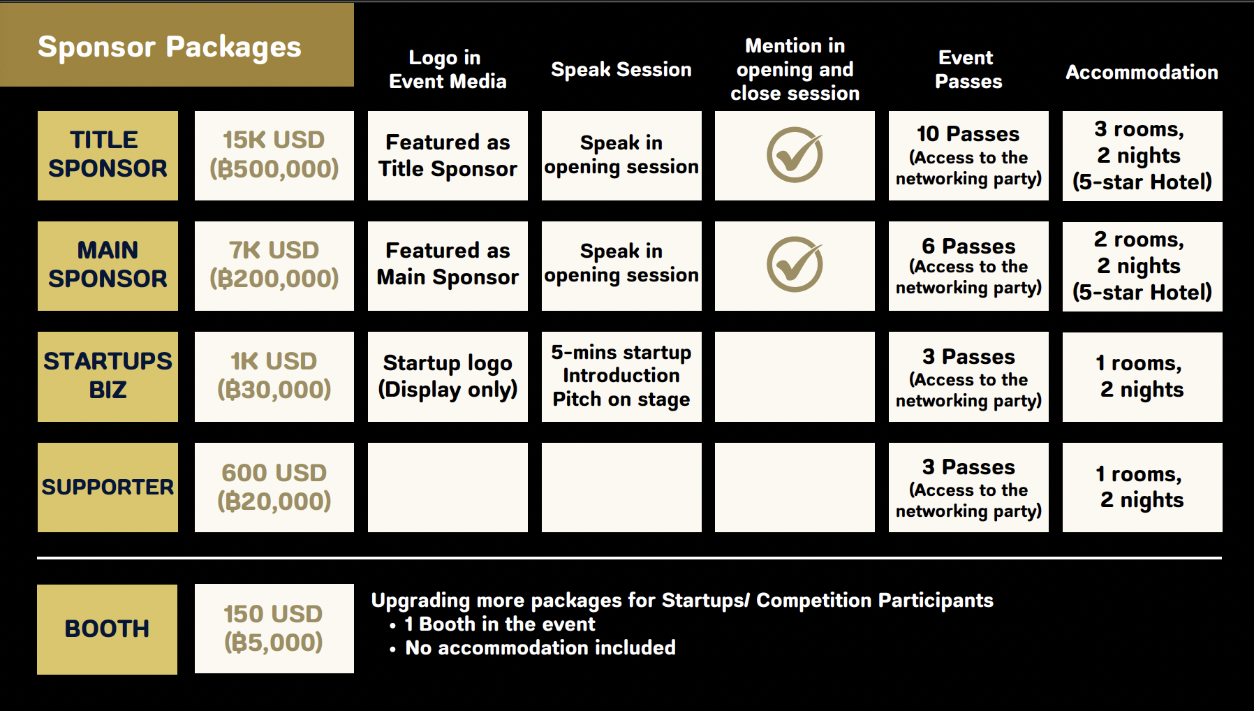 スタートアップ以外の観光関連の一般企業は、下記パッケージのいずれかをご協賛のうえ、ご参加いただけます